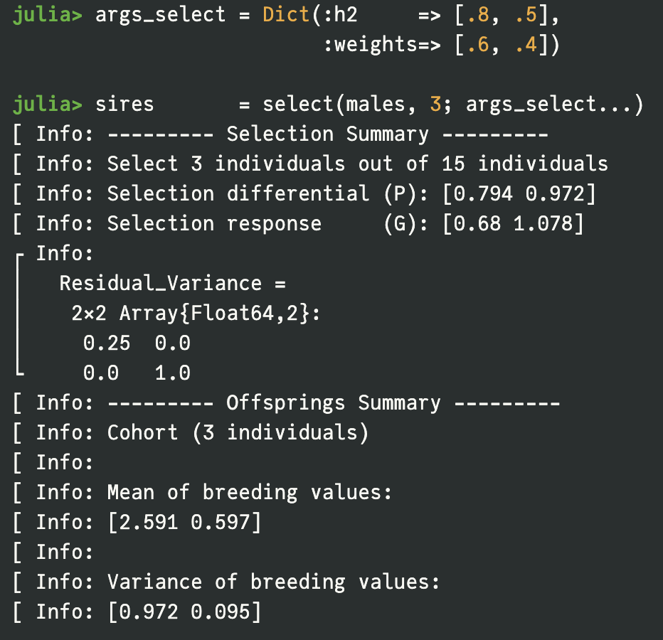 XSimV2 simplifies the core breeding operations into two intuitive modular functions, mate() and select(), allowing users to concatenate, subset, and organize populations using straightforward operators like '+' or 'subset'. The library seamlessly integrates with the 'JWAS' package to perform genetic evaluations using advanced statistical models such as GBLUP and Bayesian Alphabets, enabling users to easily estimate breeding values (EBV) and simulate selection based on complex criteria like phenotypes or selection indices.
